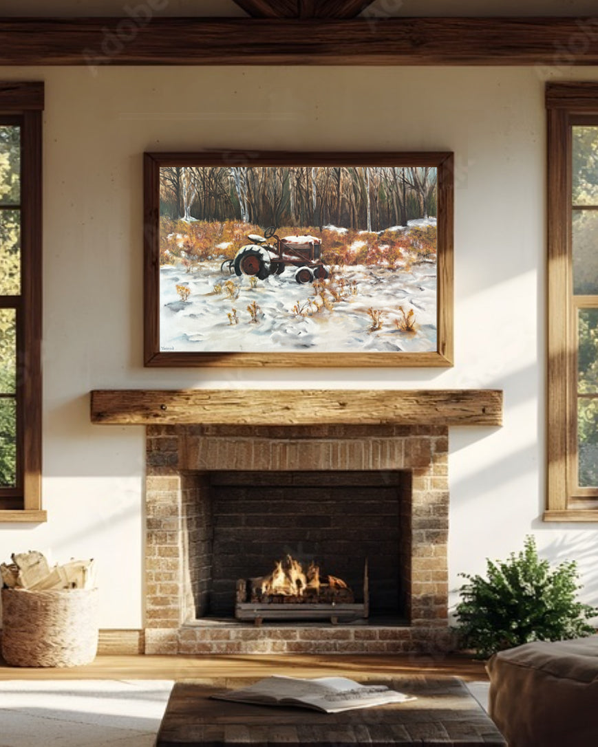 "Cub" refers the the International Harvester Cub tractor, viewed here as the first dusting of snow is on the ground after the harvest.