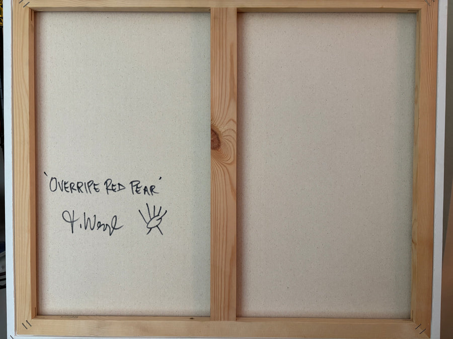 OVERRIPE RED PEAR by Timothy Wood. Oil on canvas. Original painting. 20 x 24 inches unframed. Signed by the artist with full signature on back of canvas.